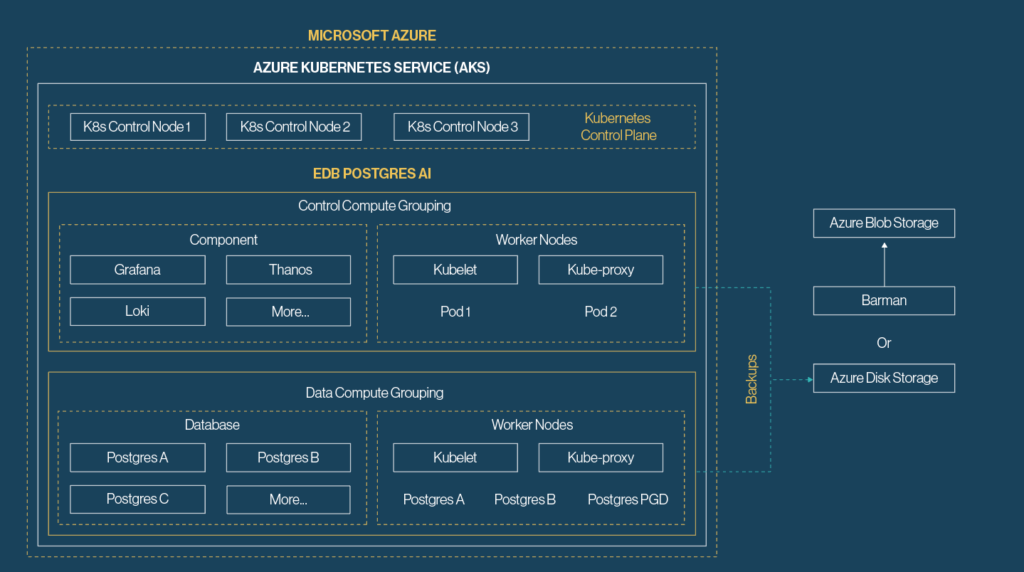 유연성은 데이터 주권의 초석입니다. EDB는 마이크로소프트와의 파트너십을 통해 EDB PG AI Hybrid Manager를 Azure Kubernetes Service(AKS)에서 공식 지원합니다. 이제 오픈소스 표준인 CloudNativePG(CNPG)의 운영 우수성을 Azure 환경에서도 그대로 누릴 수 있습니다.