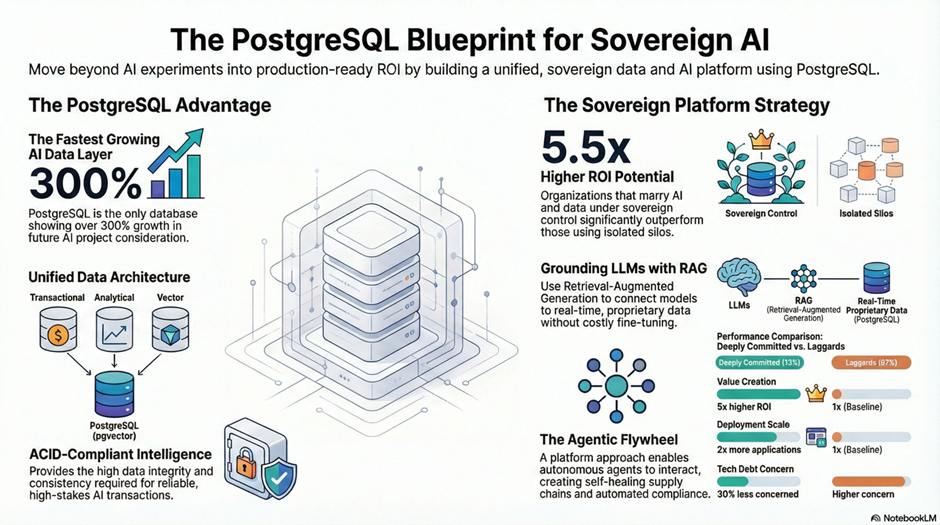 놀라운 점은 이 13%의 “깊이 헌신하는(deeply committed)” 기업들이 다른 기업들보다 무려 5.5배 더 높은 투자수익률(ROI)을 창출하고 있다는 사실입니다. 그들의 성공 비결은 단순히 새로운 기술을 도입하는 데 있지 않습니다. 이들은 데이터와 AI를 하나의 플랫폼으로 결합하고, 데이터가 어디에 있든 안전하게 통제되는 ‘데이터 주권’을 확보하며, 사일로(silo)가 아닌 플랫폼 사고방식을 채택했습니다. 이들의 플랫폼은 화려한 비정형 데이터뿐만 아니라, 기업의 모든 활동이 기록된 ‘트랜잭션 데이터’라는 보물을 통합하여 AI를 현실에 단단히 고정시킵니다.